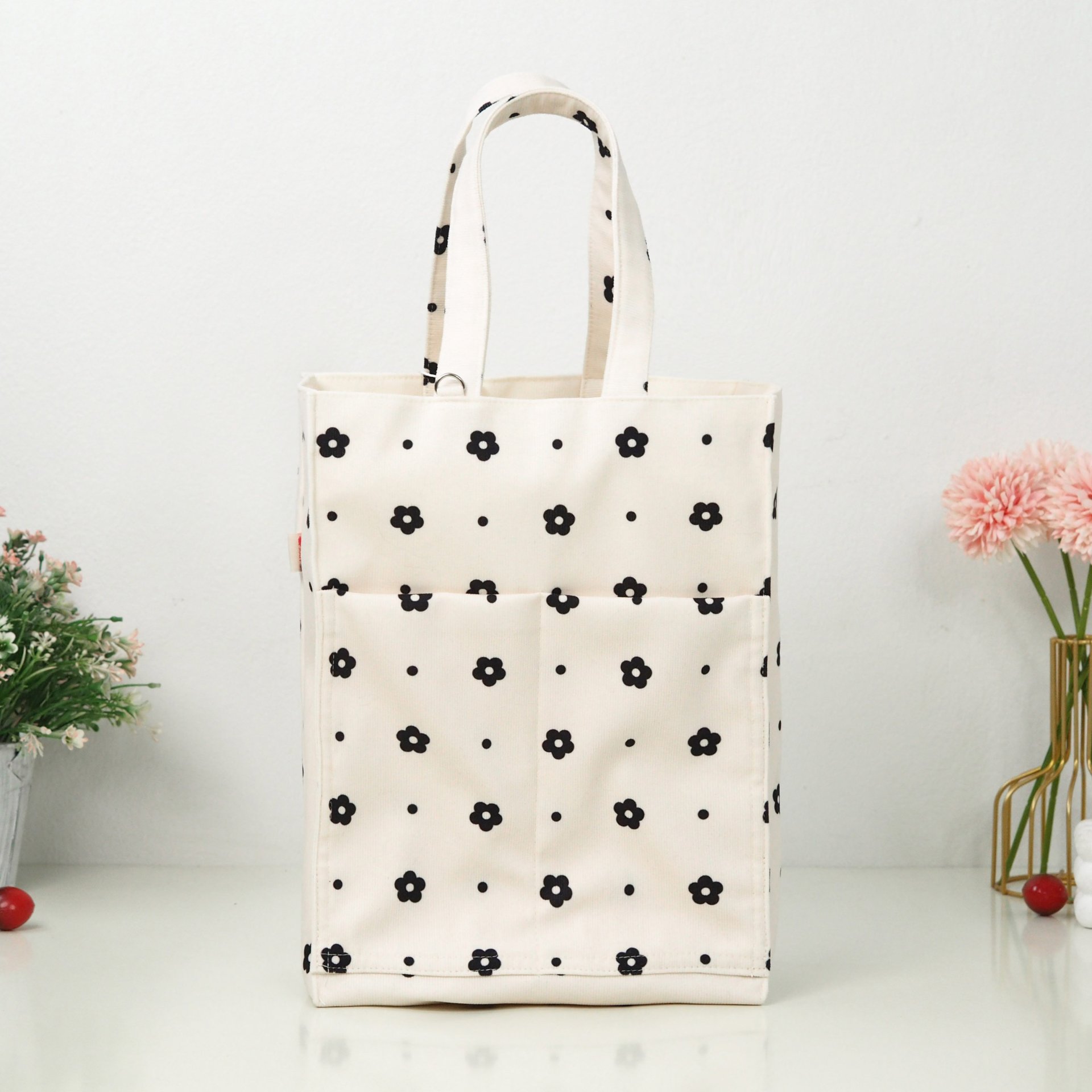 กระเป๋าใบกลาง รุ่น ทรงสูง XL ดอกดำใหญ่จุด